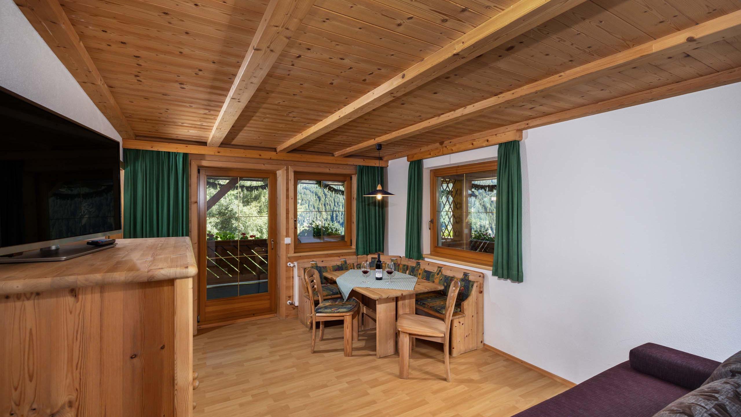 Wählen Sie diese gemütliche Ferienwohnung, um von der Stube aus den Blick über die umliegenden Berggipfel schweifen zu lassen. Die Ferienwohnung verfügt zudem über ein Schlafzimmer mit Doppelbett, eine kleine, funktional ausgestattete Küche für Selbstversorger und ein Badezimmer mit Dusche und WC.